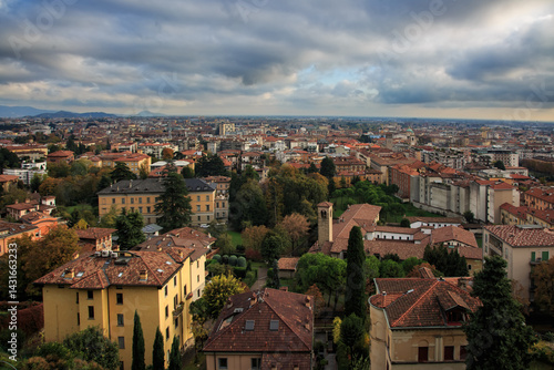 © mstudio, Fototapeta premium Bergamo View with Autumn Colors and Mountain Horizon
