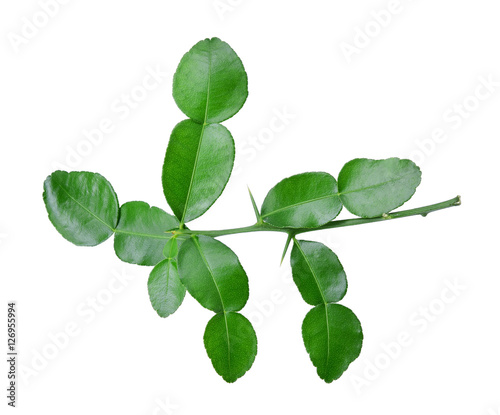 © Superheang168, Fototapeta premium Bergamot, kaffir lime leaves isolated on white background
