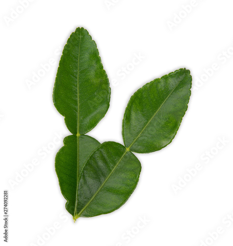 © sathit, Obraz premium bergamot leaf on white background, Top view