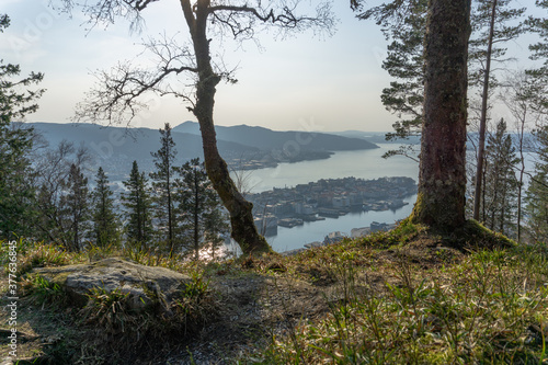 Obraz premium Bergen city landscape behind the trees (3)