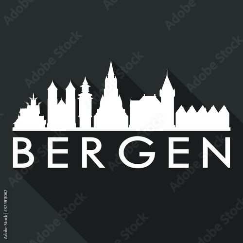 Fototapeta premium Bergen Flat Icon Skyline Silhouette Design City Vector Art Famous Buildings.