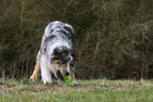 © Dogs, Fototapeta premium berger australien ramassant son jouet