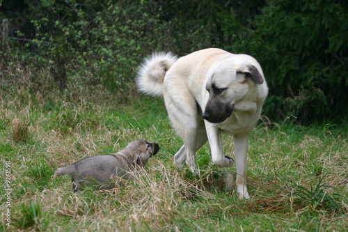 © Dogs, Obraz premium berger d'anatolie mère éduquant son petit
