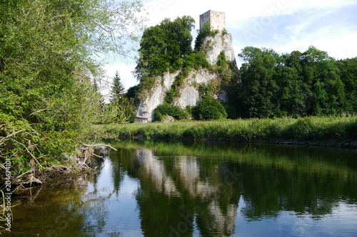 Fototapeta premium Bergfried Burg Dietfurt auf Felsen an der Donau.