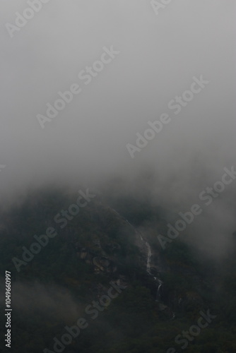 Obraz premium Bergkette in Wolken und Nebel in Norwegen