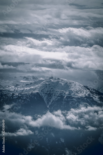 Fototapeta premium Bergstation am Patscherkofel mit verschneiten Berg in der blauen Stunde