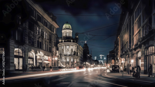 © Sebastian, Fototapeta premium Berlin by night, created with generative AI