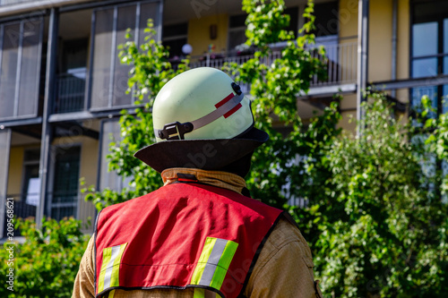 Obraz premium Berlin, 08.06.2018 ein Feuerwehrmann vor einem Haus