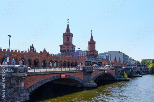 Fototapeta premium Berlin (Germany) - August: Oberbaum bridge historical architecture