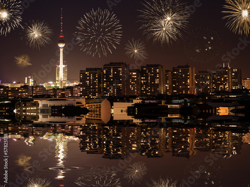 © sp4764, Fototapeta premium berlin panorama und feuerwerk