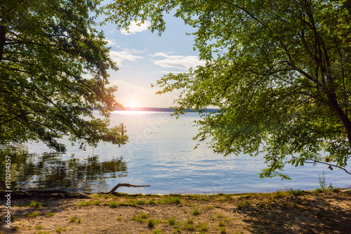 © Maurice Tricatelle, Naklejka premium Berliner Müggelsee Ufer Berlin Friedrichshagen Badestelle Läufer Nachmittag Köpenick Sommerabend wilde Badestelle baden gehen Müggelspree Berliner Freizeit Badestrand Badebucht Uferbereich Gewässer