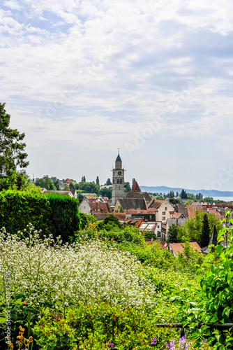 © bill_17, Fototapeta premium Überlingen, Münster, St. Nikolaus, Aussichtspunkt, Panorama, Gallerturm, Stadtbefestigung, Kirche, Altstadt, Altstadthäuser, Bodensee, Uhlandshöhe, Sommer, Baden-Württemberg, Deutschland