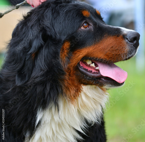 Fototapeta premium Bernese mountain dog or Bernese Shepherd on a walk