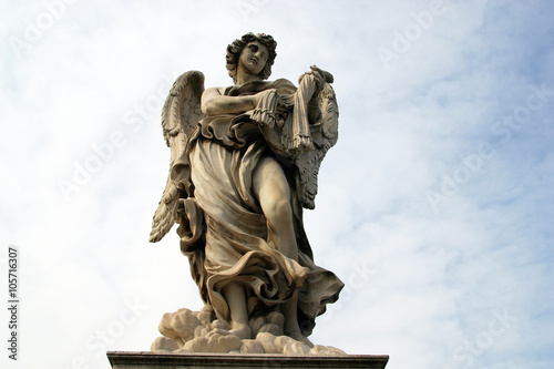 Fototapeta premium Bernini's angel along the Holy Angel bridge near the Hadrian Mausoleum in...