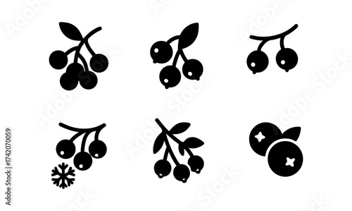 © Frodo, Fototapeta premium Berry icon set in minimalistic silhouette style for food and nature themes