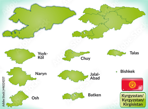 Obraz premium Übersichtskarte von Kirgisistan mit Grenzen und Flagge