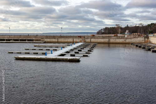 Fototapeta premium Berth for boats and small vessels. An empty pier on the seashore