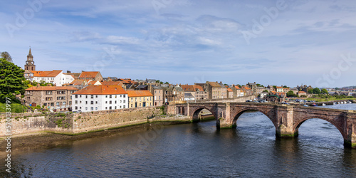 © Jim, Fototapeta premium Berwick Bridge (Old Bridge), built in 1634, the oldest of three bridges spanning the River Tweed at Berwick-upon-Tweed, Northumberland.
