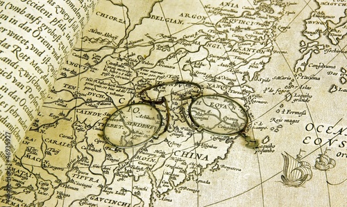 © neko92vl, Obraz premium besicle, lorgnette na mapie z XVII wieku