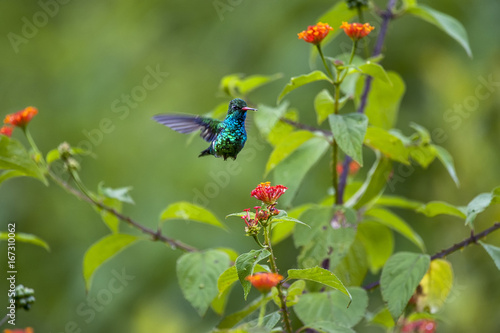 © Leonardo, Fototapeta premium Besourinho-de-bico-vermelho (Chlorostilbon lucidus) | Glittering-bellied Emerald