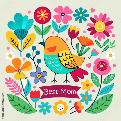 Fototapeta premium Best mom, thank you mom stock illustration birds and flowers decor design