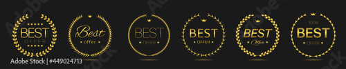 © mykhailobokovan, Naklejka premium Best offer Golden laurel wreath label set