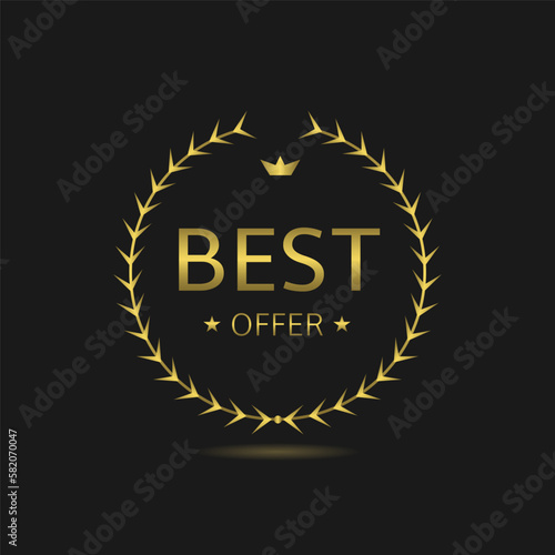 © mykhailobokovan, Fototapeta premium Best offer golden laurel wreath vector label
