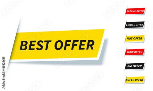 Fototapeta premium Best Offer, Limited, Special, Hot, Big and Super offer set banner, web design elements. vector ribbons, shopping tags