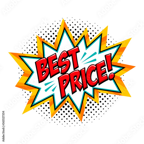 Fototapeta premium Best price - Comic book style word on a yellow background. Best price comic text speech bubble. Banner in pop art comic style. Color summer banner in pop art style Ideal for web. Decorative background