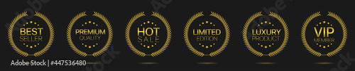 © mykhailobokovan, Naklejka premium Best seller Golden laurel wreath label set