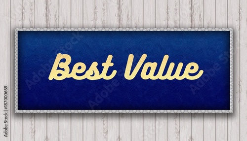 Obraz premium BEST VALUE handwritten on blue leather pattern painting hanging on wooden wall.