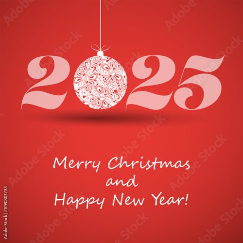 © bagotaj, Naklejka premium Best Wishes, Merry Christmas and Happy New Year Greeting Card, Creative Design, Vector Template for Year 2025