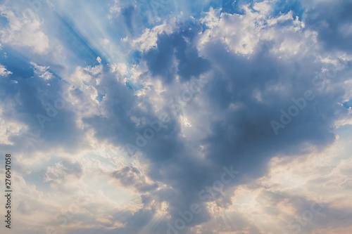 Fototapeta premium Besutiful ray of sunlight breaking through clouds at sunset.