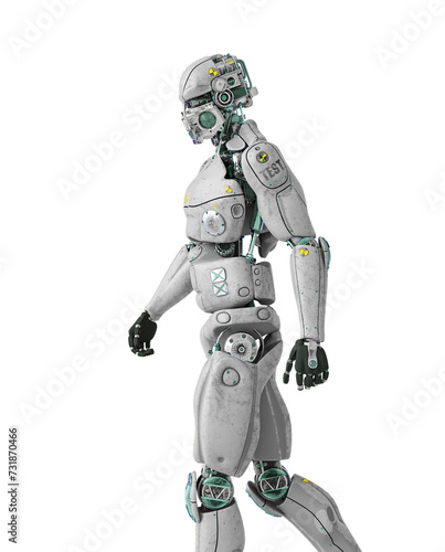 © DM7, Fototapeta premium beta tester mech is wlking alone on side close up view