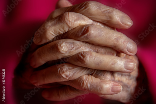 Fototapeta premium betende Hände, innig gehalten mit vielen Falten