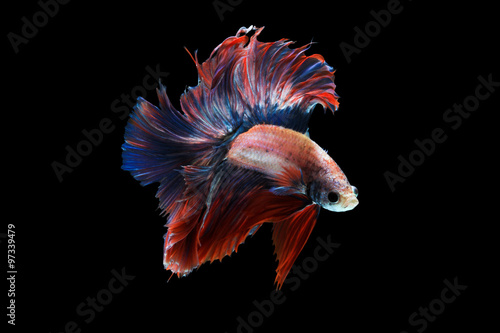 © note_yn, Obraz premium Betta fish isolated on black background. ( Mascot double tail )