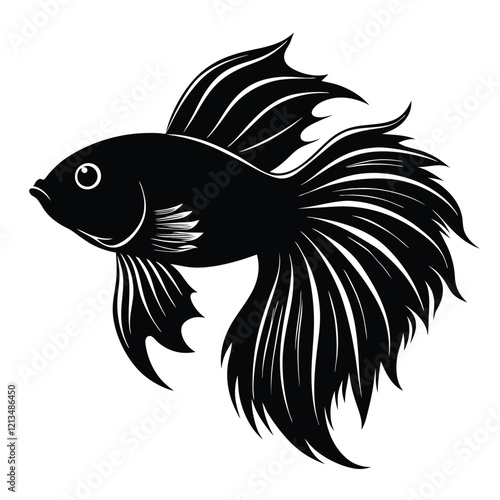 © shopone, Obraz premium Betta fish silhouette isolated in White background