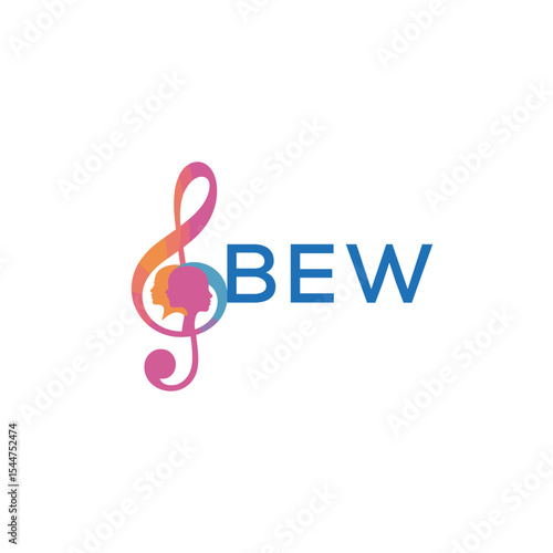 Fototapeta premium "BEW Music and Arts Logo Design, BEW Later Logo, Abstract Treble Clef with...