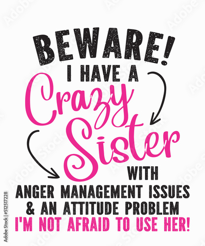 © Charvak, Fototapeta premium beware i have a crazy sisteris a vector design for printing on various surfaces like t shirt, mug etc.