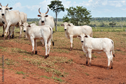 Obraz premium Bezerro e vaca Nellore em pasto verde