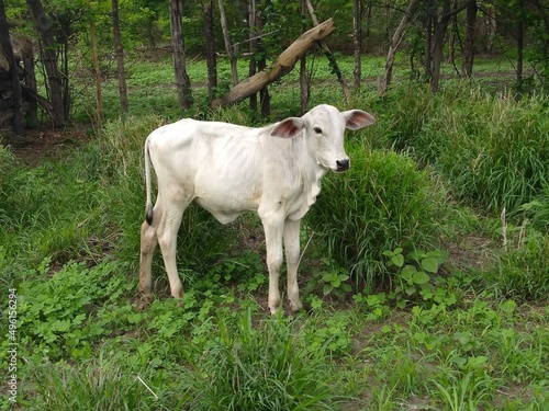 © JosLPinheiro, Fototapeta premium Bezerro nelore branco roça