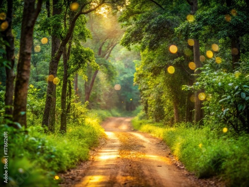 Obraz premium Bhadra's tiger reserve: a bokeh-blurred jungle path, double exposure magic.