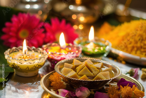 © Vig, Obraz premium Bhai Dooj Greeting Card Background, Generative AI