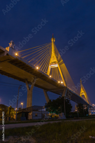 Obraz premium Bhumibol Rama 1 Bridge : 夜景・橋・ラマ一世・バンコク