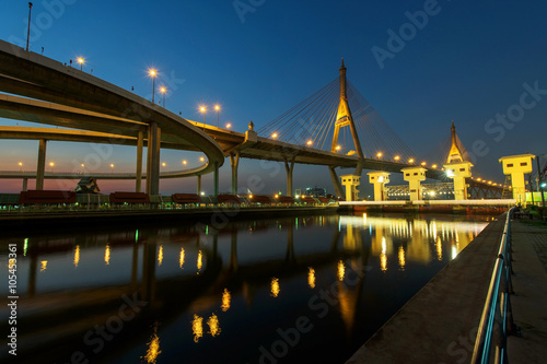 © Blanscape, Obraz premium Bhumibol suspension Bridge at dusk in Bangkok