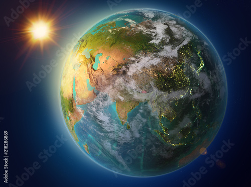 Fototapeta premium Bhutan with sunset on Earth