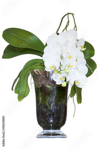 © danako, Fototapeta premium Biała orchidea w szklanym naczyniu