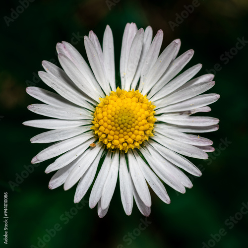 © Henryk Niestrój, Obraz premium biała stokrotka z żółtym środkiem na czarnym tle