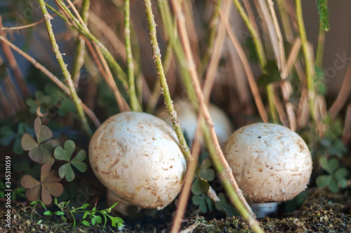 © Luka, Obraz premium Białe grzyby na ziemi w lesie jesienią