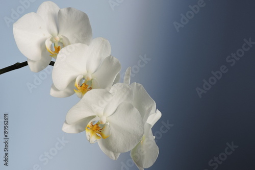 © E-lona, Fototapeta premium Białe storczyki, niebieskie tło
